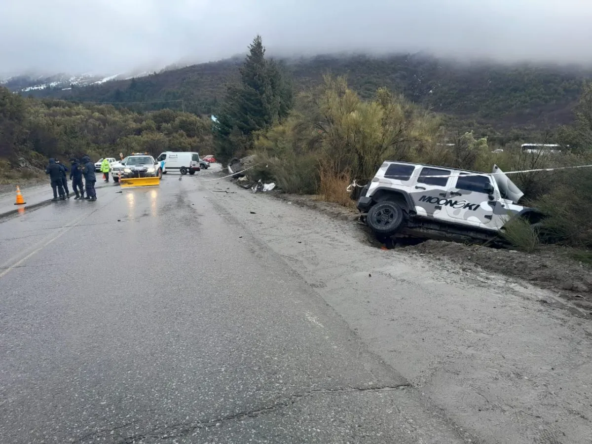 Una mujer murió al salir despedida del vehículo en el que iba como acompañante, luego de recibir el impacto de un vehículo Jeep Wrangler, cuyo conductor habría invadido el carril opuesto en la ruta al cerro Catedral.