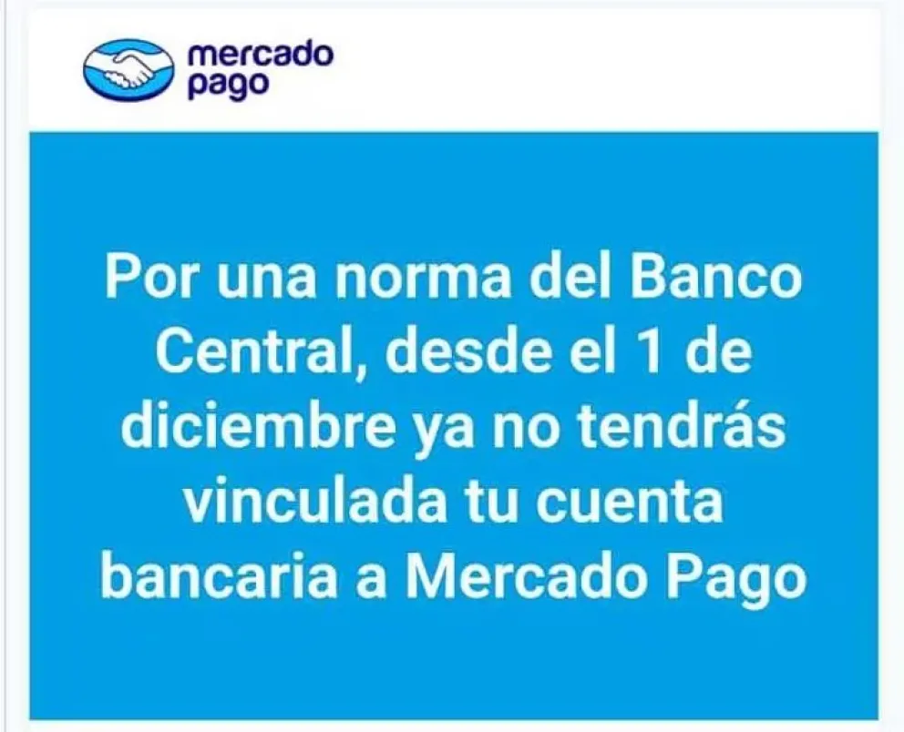 Mercado Pago advirtió que ya no se podrán vincular cuentas bancarias a la app