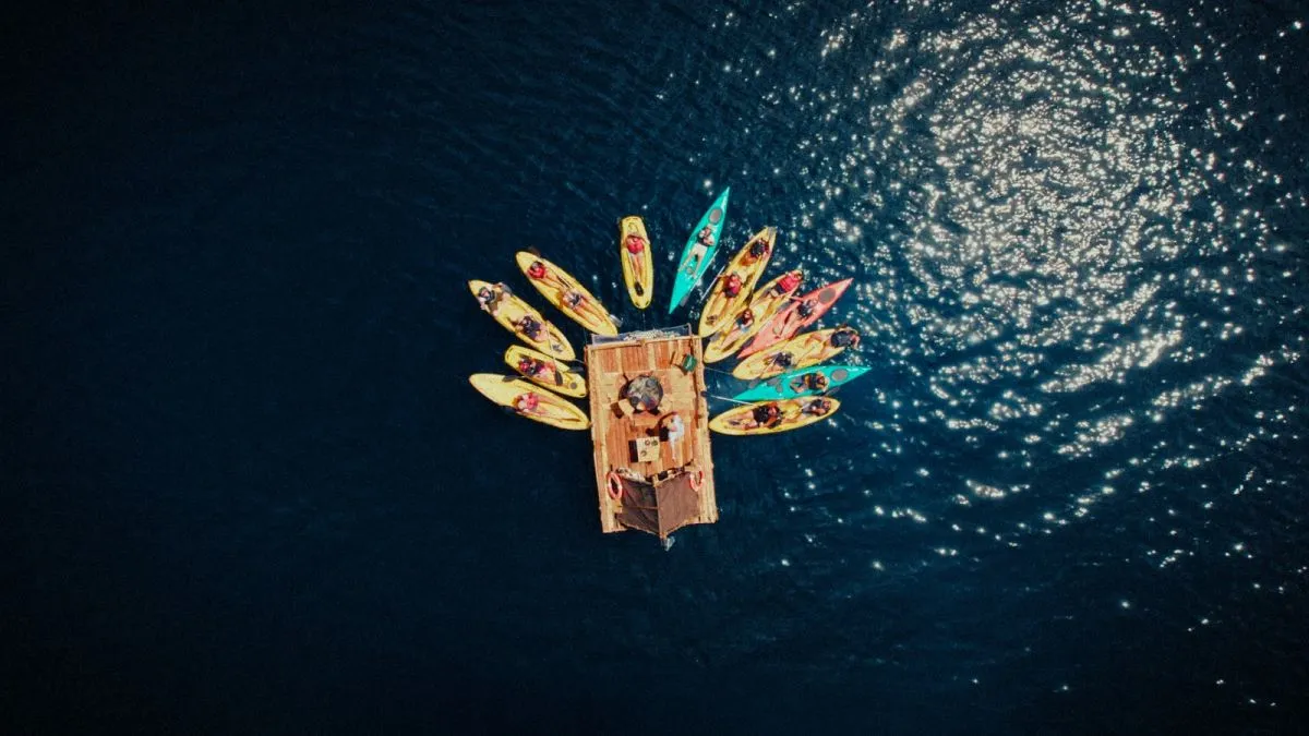 Los 10 invitados, entre ellos influencers, content creators, fotógrafos y cuatro afortunados ganadores del sorteo de la marca, remaron durante 30 minutos para llegar a una isla donde iban a disfrutar un almuerzo. Lo que no sabían, es que de camino a su destino estaba Salva esperándolos sobre una balsa que él mismo había construido durante varios meses para cocinarles a este reducido grupo.