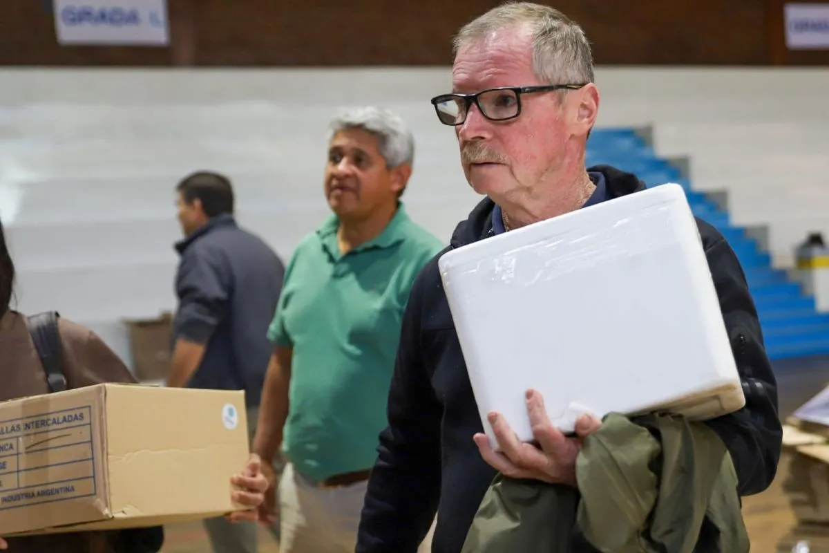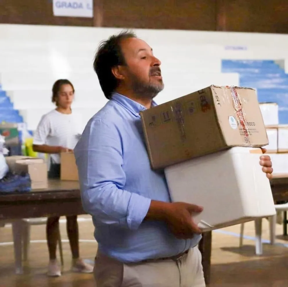 La recolección de elementos continúa en el gimnasio del colegio Don Bosco, donde Carr estuvo con José “Cachito” Lepio, uno de los integrantes locales de la Red y organizador de la campaña de donación.