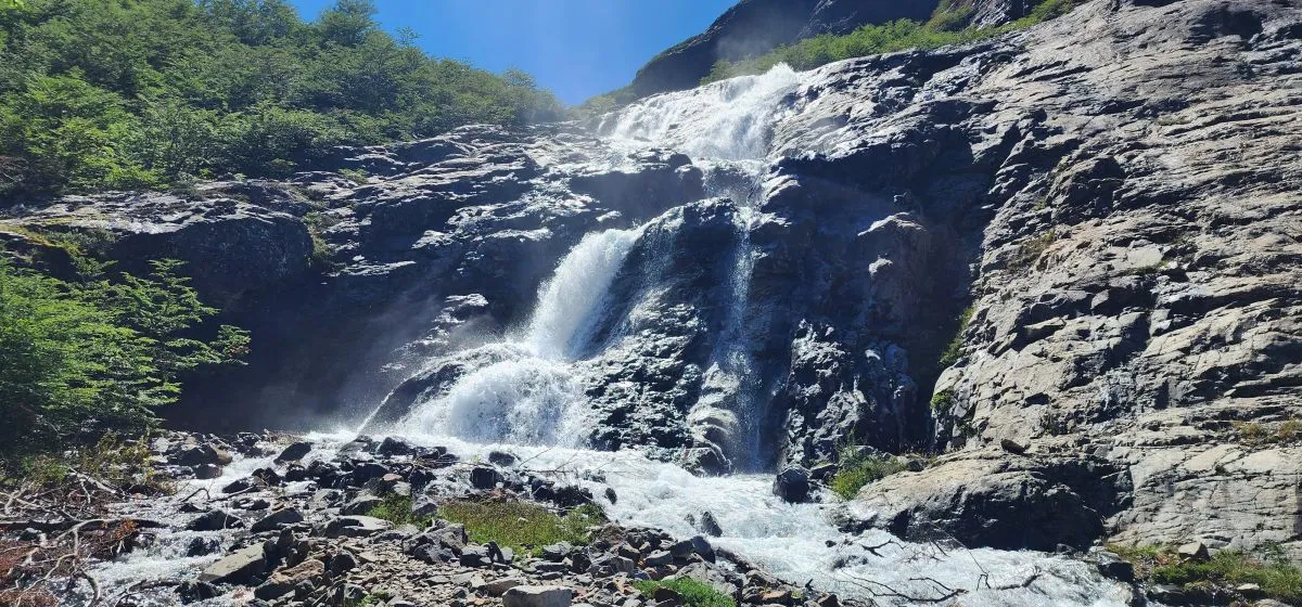 El mismo arroyo hay que cruzarlo en cuatro oportunidades, la última a metros de la laguna. La parte más compleja – y más cautivante en cuanto a los paisajes – es la final. El agua baja con fuerza y hay gran cantidad de saltos y cascadas. Para llegar a destino, hay que avanzar sobre los pedreros junto al arroyo y para ello se necesita fuerza de piernas, algo de equilibrio y atención para seguir las “pirkas” que orientan a los caminantes.