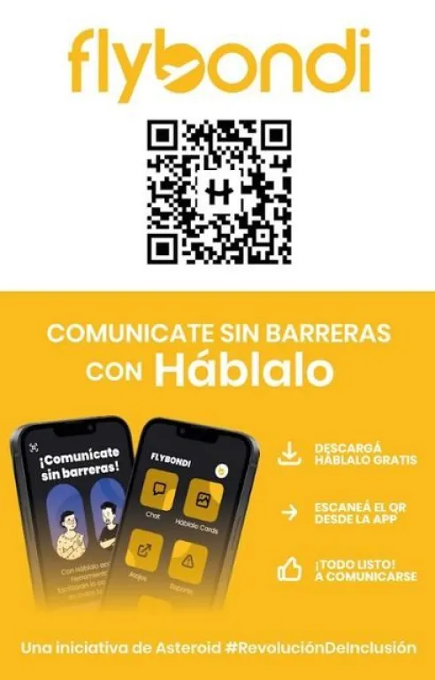 Con la incorporación de Háblalo, Flybondi, se convierte en la primera aerolínea de América Latina en sumar esta tecnología para que los pasajeros con alguna barrera comunicacional puedan disfrutar de un viaje adaptado a sus necesidades. Esta iniciativa, que combina seguridad y accesibilidad, sigue la línea del compromiso con la inclusión, junto con la reciente disponibilidad de información en lengua de señas argentina para todo el proceso de vuelo.