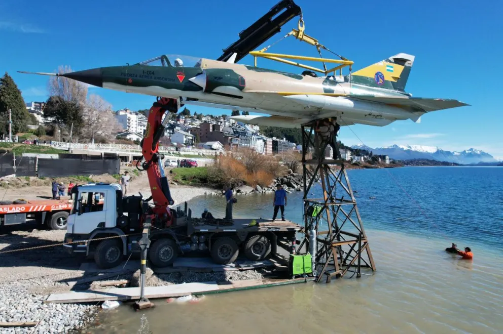 De cara a la inminente inauguración del llamado Memorial de Malvinas en Bariloche en diagonal al Centro Cívico y frente a la costanera, se emplaza desde hoy en ese flamante edificio la histórica aeronave Mirage III, la misma que durante el breve período de guerra permitia a los soldados volar al ras del agua para evitar ser detectados por los radares británicos.