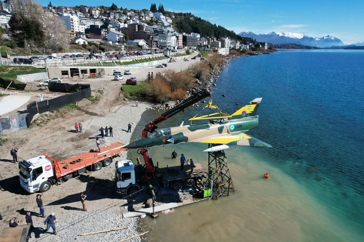 A días de inaugurarse el Memorial de Malvinas, el avión "Mirage III" ya luce frente al lago