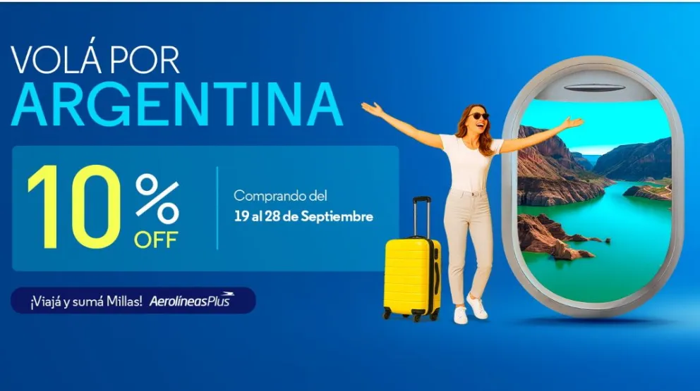 Aerolíneas Argentinas lanzó una promoción especial de primavera con un 10% de descuento en todos los vuelos domésticos. El beneficio estará disponible desde este viernes y hasta el domingo 28 de septiembre, y se aplicará sobre las tarifas vigentes al momento de la compra.