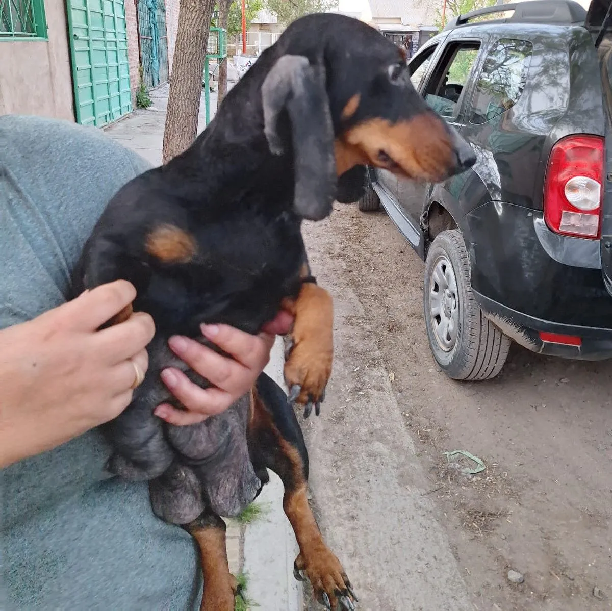 Tras el allanamiento que se realizó el viernes pasado en horas de la tarde, se logró rescatar un total de 10 perros de raza Dachshund, más conocidos como salchichas. La perra, madre de los 9 cachorros recién nacidos, se encontraba en evidente estado de maltrato y explotación.
