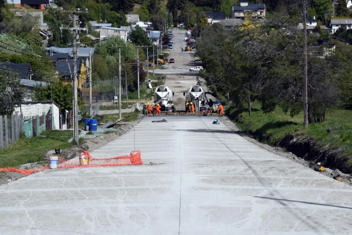 Continúa a buen ritmo la obra de pavimentación sobre calle 25 de Mayo, donde el hormigonado progresa hacia el sector de calle Castex como parte del plan integral que impulsa la Municipalidad de San Carlos de Bariloche.