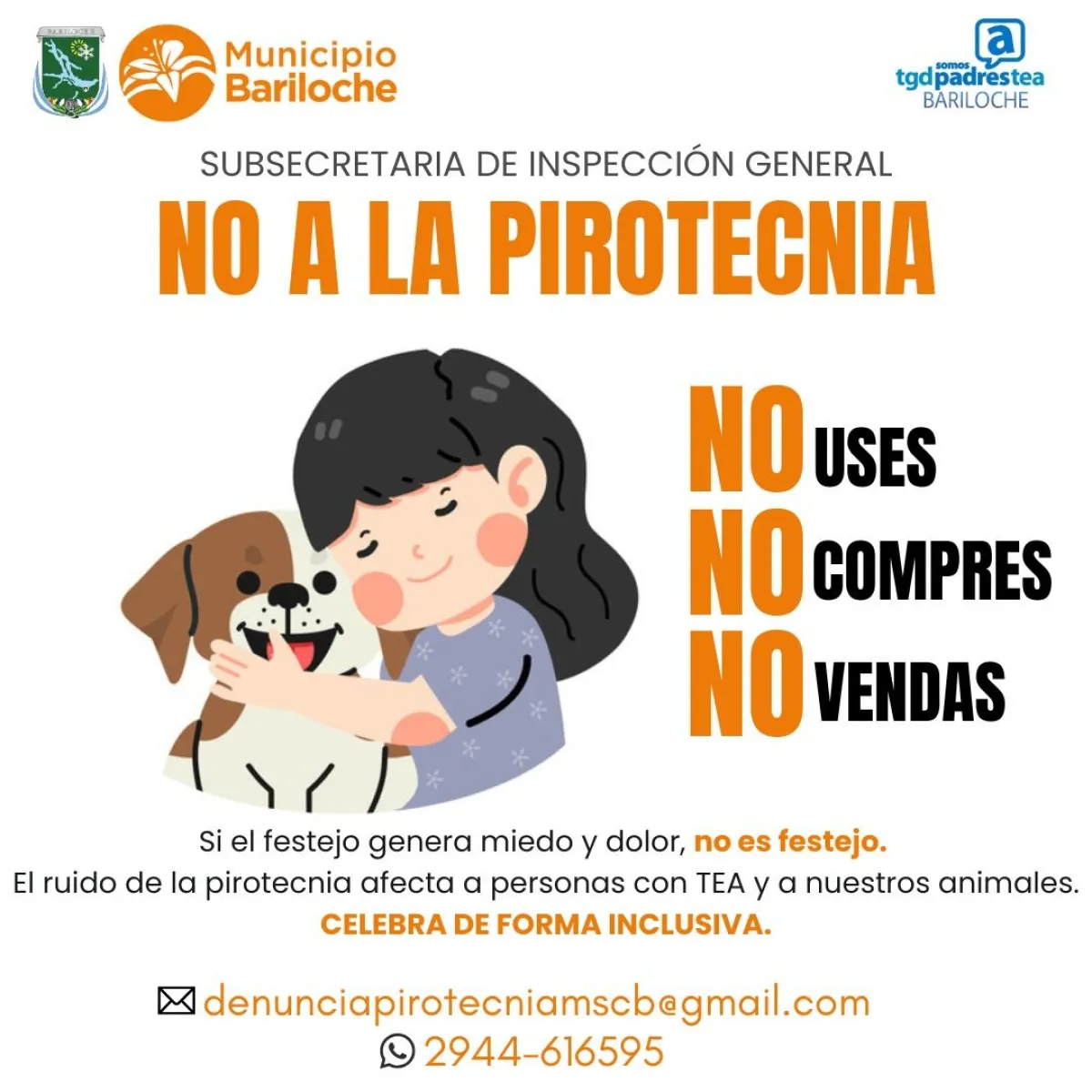 La comunidad puede colaborar adoptando alternativas de celebración sin estruendos y denunciando el uso o la venta ilegal a los canales habilitados: [email protected] /2944-616595