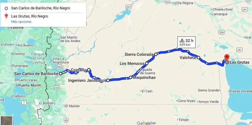 Planteada en 4 días y etapas, con 3 noches de pernocte y 12 Puntos de Abastecimiento, la carrera largará en Bariloche y atravesará las localidades de Dina Huapi, Pilcaniyeu, Comallo, Ingeniero Jacobacci, Maquinchao, Los Menucos, Sierra Colorada, Ramos Mexía y Valcheta, para llegar al balneario de San Antonio Oeste.