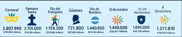 Fue el último del año. La Confederación Argentina de la Mediana Empresa hizo un análisis provincia por provincia. Fueron casi 1,4 millones de turistas los que se movilizaron con un gasto total de $ 249.370 millones.