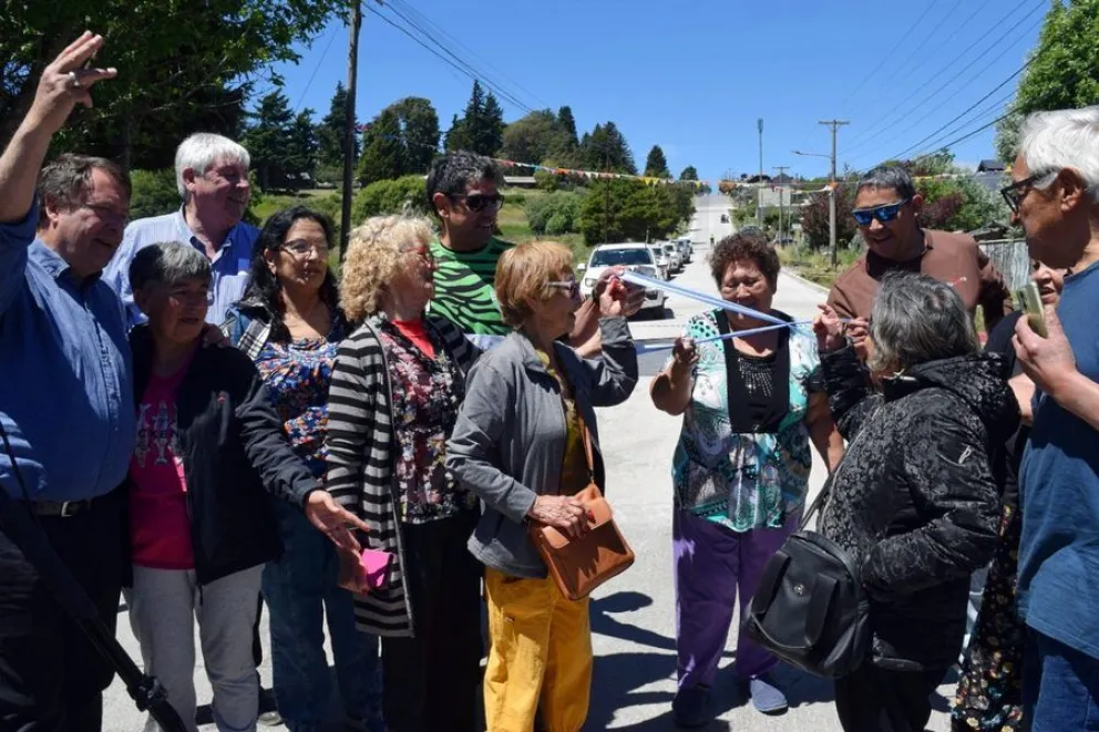 La celebración comenzó en el kilómetro 6 de la Avenida de los Pioneros, en el acceso al barrio Rancho Grande, donde el flamante pavimento unió la calle de subida y bajada con una trasversal, donde se forma una plazoleta que quedó rodeada por el asfalto nuevo.