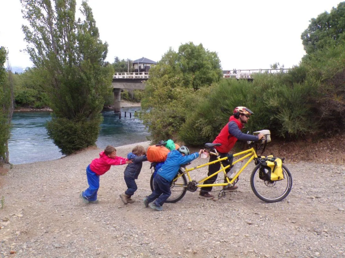 Un matrimonio joven se tomó un año sabático y junto a sus tres pequeños hijos recorren en bicicleta desde Cusco al extremo sur de Argentina y Chile. Pasaron por Bariloche y describieron el raid a Económicas Bariloche.