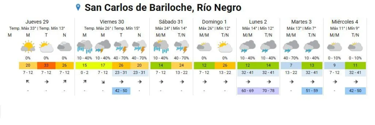 El pronóstico para Bariloche anticipó probabilidad de lluvias para el viernes y descenso de las máximas para sábado y domingo. Refresca más la próxima semana.