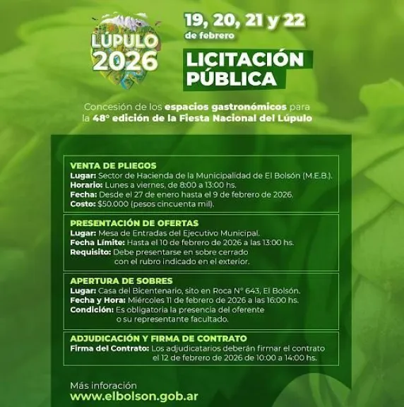 Licitación pública de El Bolsón para puestos de comida y bebida en la Fiesta Nacional del Lúpulo