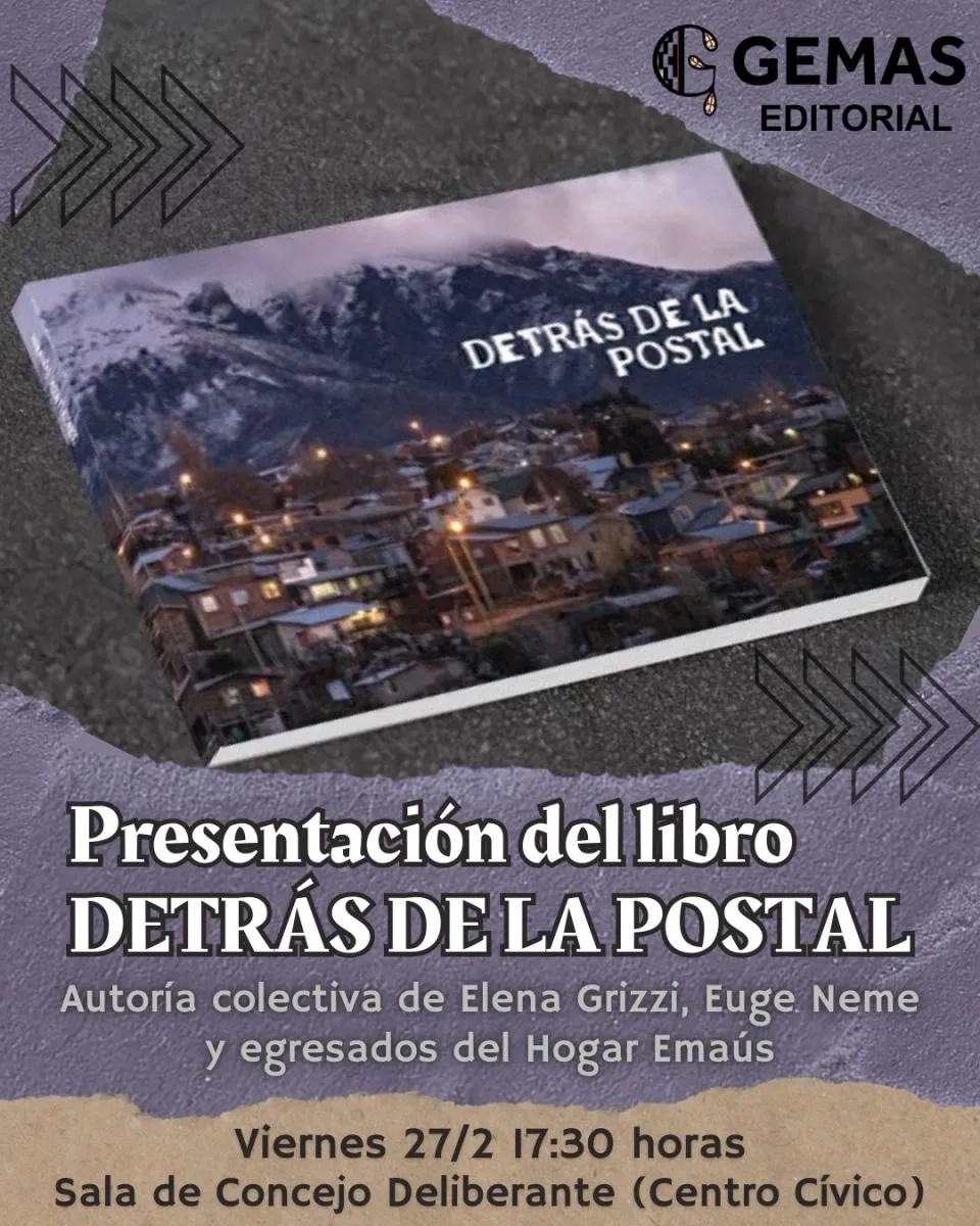Con autoría colectiva de Elena Grizzi, Euge Neme y los egresados del Hogar Emaús, el libro "Detrás de la Postal" editado por la Editorial GEMAS, se presentará el próximo viernes 27 de febrero.